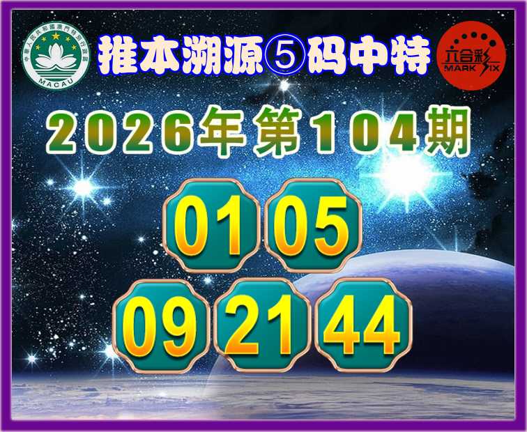 104期:【推本溯源】 🧏♀️⑤码中特🧏♀️【01.05.09.21.44】开:01准